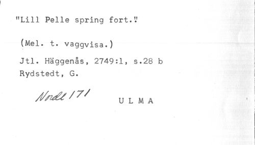 //// r //// ! //// "Lill Pelle spring fort.'.' //// (Mel. t. vaggvisa.) //// . //// t //// Jtl. Häggenås, 2749:1, s.28 b //// < //// Rydstedt, G. //// < //// i //// ULMA //// ) //// * i ////