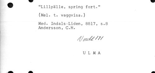 //// * "Lillpälle, spring fort." //// (Mel. t. vaggvisa.) //// Med. Indals-Liden, 8817, s.8 //// Andersson, C.H. //// ! //// U L M A ////