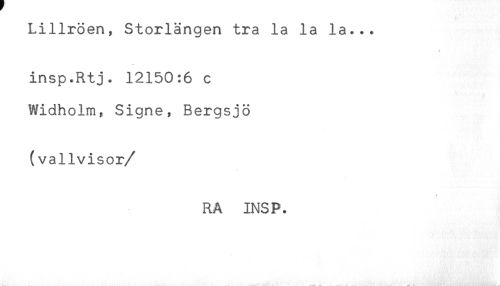 //// Lillröen, Storlängen tra la la la... //// t //// insp.Rtj. 12150:6 c //// Widholm, Signe, Bergsjö //// (vallvisor //// /RA INSP. //// -f - s ////