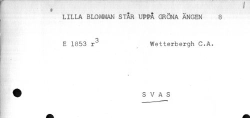 //// $ //// LILLA BLOMMAN STÅR UPPÅ GRÖNA ÄNGEN 8 //// E 1853 r^ Wetterbergh C.A. //// * //// - //// - //// # S VAS ////