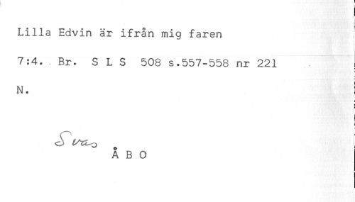 //// Lilla Edvin är ifrån mig faren //// 7:4. Br. SLS 508 s.557-558 nr 221 //// = //// : //// N. //// ' //// ÅBO ////