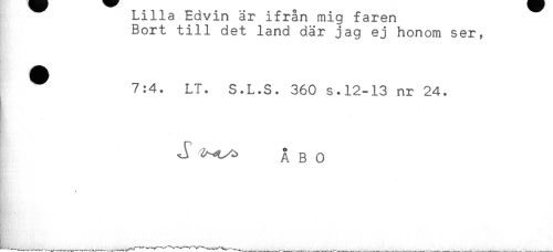 //// Lina tavm ar itran mig tåren //// Bort till det land där jag ej honom ser, //// ^ 7:4. LT. S.L.S. 360 s.12-13 nr 24. //// J ^ B 0 //// L ////