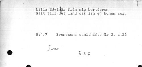 //// allt till aet land där jag ej honom ser, //// ! //// 8:4.? Svenssons saml.häfte Nr 2. s.26 ////