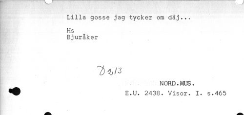 //// Lilla gosse jag tycker om däj... //// . //// Hs //// Bjuråker //// * //// < //// NORD.MUS. //// E.U. 2438. Visor. 1. s.465 ////