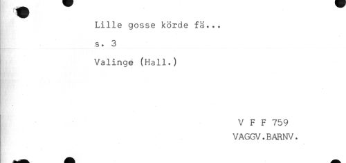 //// Lille gosse körde fä... //// s. 3 //// Valinge (Hall.) //// - //// * //// V F F 759 //// VAGGV.BARNV. ////