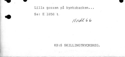 //// Lilla gossen på kyrkobacken... //// ^ Se: E 1858 t //// KB:S SKILLINGTRYCKSREG. //// , . . . . * . . - . , . ////