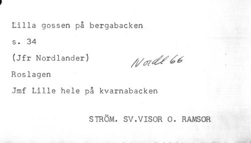//// Lilla gossen på bergabacken //// s. 34 //// (Jfr Nordlander) //// Roslagen //// Jmf Lille hele på kvarnabacken //// STRÖM. SV.VISOR O. RAMSOR ////