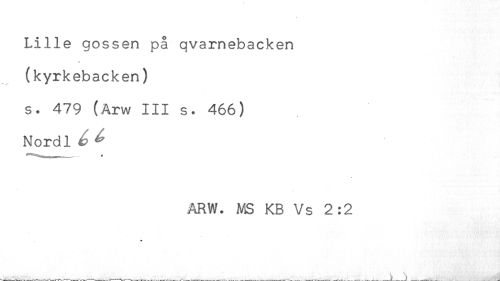 //// ) //// Lille gossen på qvarnebacken //// * //// (kyrkebacken) //// s. 479 (Arw III s. 466) //// Nordl ^ ^ //// ARW. MS KB Vs 2:2 ////