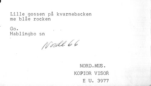 //// Lille gossen på kvarnebacken //// me blåe rocken //// s //// Go* , . //// Hablingbo sn //// . //// - //// NORD.MUS. //// t //// KOPIOR VISOR //// E U. 3977 ////