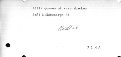 //// Lilla gossen på kvarnabacken //// Smål Kläckeberga 61 //// . //// * U L M A ////