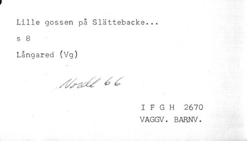 //// Lille gossen på Slättebacke... //// s 8 //// Långared (Vg) //// I F G H 2670 //// VAGGV. BARNV. ////