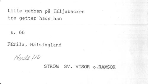 //// Lille gubben på Täljabacken //// tre getter hade han //// < //// i //// { //// s. 66 ! //// Färila, Hälsingland //// STRÖM SV. VISOR o.RAMSOR //// k ////