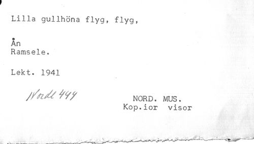 //// ' //// Lilla gullhöna flyg, flyg, //// e //// An //// Ramsele. //// Lekt. 1941 //// / ^^ ^^ NORD. MUS. //// Kop.ior visor ////