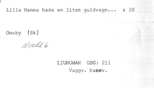 //// Lilla Hanna hade en liten guldvagn... s 10 //// - i //// Ousby (Sk) //// LIUNGMAN GBG: 211 //// Vaggv. bannrv. ////