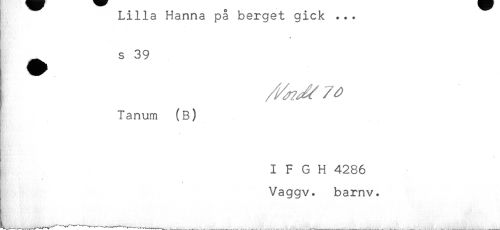 //// Lilla Hanna pa berget gick ... //// * //// ! ^ s 39 //// Tanum (B) //// - //// - //// I F G H 4286 //// Vaggv. barnv. ////