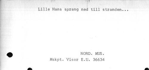 //// Lille Hans sprang ned till stranden... //// * //// - //// ^ NORD. MUS. //// Mskpt. Visor E.U. 36634 //// HFt-' ////
