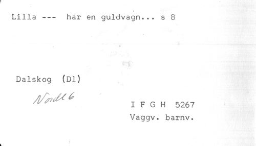 //// * //// Lilla --- har en guldvagn... s 8 //// i //// Dalskog (Dl) //// ^^ IFGH 5267 //// Vaggv. barnv. ////