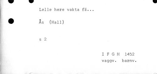 //// Lelle here vakta fä... //// i //// ! //// # Ås (Hall) //// t //// s 2 //// I F G H 1452 //// I vaggv. barnv. ////