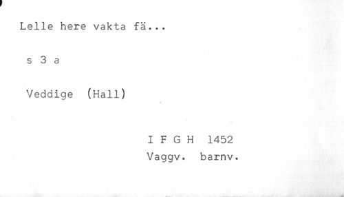 //// Lelle here vakta fä... //// s 3 a //// Veddige (Hall) //// # //// I F G H 1452 //// Vaggv. barnv. ////