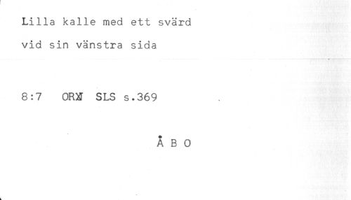//// Lilla kalle med ett svärd //// vid sin vänstra sida //// * //// 8:7 ORK SLS s.369 //// ÅBO ////