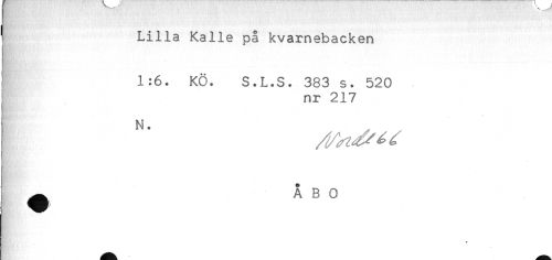 //// j Lilla Kalle på kvarnebacken //// } 1:6. KÖ. S.L.S. 383 s. 520 //// j nr 217 //// i N. //// * //// j ^ A B 0 ////