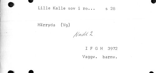 //// Lille Kalle sov i ro... s 28 //// Härryda (Vg) //// I F G H 3972 //// Vaggv. barnv. ////