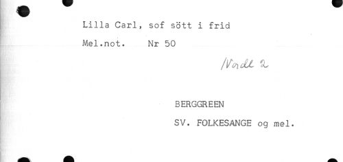//// Lilla Carl, sof sött i frid //// Mel.not. Nr 50 //// j ^ ^ //// BERGGREEN //// SV. FOLKESANGE og mel. ////
