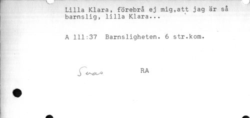 //// ! Lilla Klara, förebrå ej mig,att jag är sa //// barnslig, lilla Klara... //// A 111:37 Barnsligheten. 6 str.kom. //// * //// j R^ ////