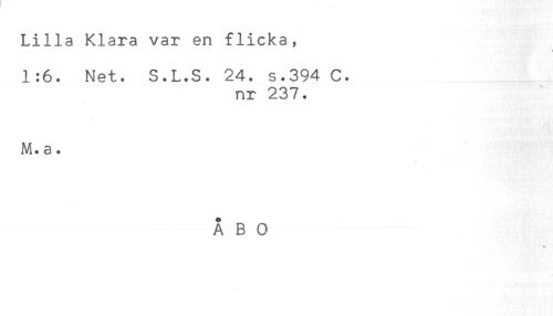 //// Lilla Klara var en flicka, //// 1:6. Net. S.L.S. 24. S.394C. //// nr 237. //// M. a. //// ÅBO ////
