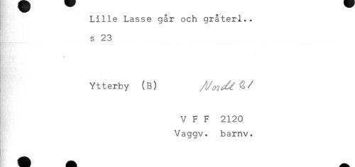 //// Lille Lasse går och gråteri.. //// s 23 //// ' * //// . //// ! //// - //// Ytterby (B) /^^g //// /V F F 2120 //// Vaggv. barnv. ////