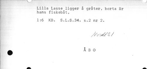 //// A..',';!. //// ) Lilla Lasse ligger å gråter, borta är //// hans fiskebåt, //// 1:6 KB. S.L.S.34. s.2 nr 2. //// HwjS--'*- //// * //// * - //// ^ ÅBO ////