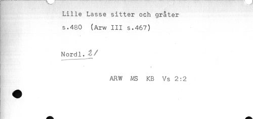 //// Lille Lasse sitter och gråter //// s.480 (Arw III s*467) //// * //// Nordl. % //// /ARW MS KB Vs 2:2 ////
