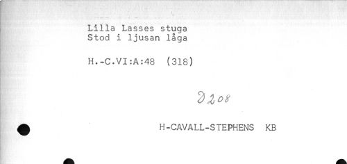 //// ^ ' * //// Lilla Lasses stuga //// Stod i ljusan låga //// . //// H.-C.VI:A:48 (318) //// . //// ! //// ^ H-CAVALL-STEPHENS KB ////