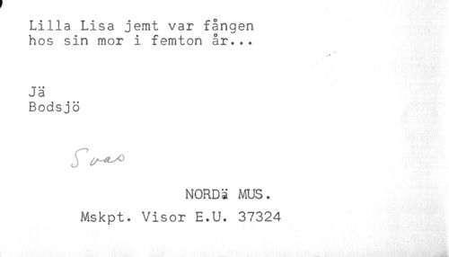 //// Lilla Lisa jemt var fången //// hos sin mor i femton år... //// Jä //// Bodsjö //// NORDä MUS. //// Mskpt. Visor E.U. 37324 ////