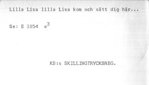 //// Lilla Lisa lilla Lisa kom och sätt dig här... //// Se: E 1854 e^ //// KB:s SKILLINGTRYCKSREG. ////