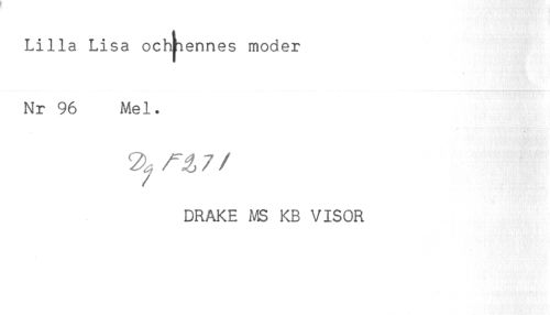 //// Lilla Lisa ochjiennes moder //// Nr 96 Mel. //// DRAKE MS KB VISOR ////