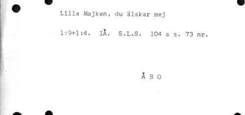 //// Lilla Majken, du älskar mej //// 1:9+1:4. IA. S.L.S. 104 a s. 73 nr. //// - //// M * *. //// ÅBO //// jW'' ////