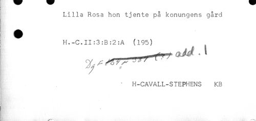 //// Lilla Rosa hon tjente på konungens gård //// H.-C.II:3:B:2:A (195) //// .....'Å.^ * ' //// - H-CAVALL-STEPHENS KB //// ... ////