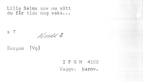 //// Lilla Selma sov nu sött //// du får tids nog vaka... //// Bergum (Vg) //// I F G H 4180 //// Vaggv. barnv. ////