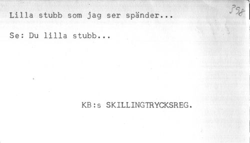 //// Lilla stubb som jag ser spänder... ^ //// Se: Du lilla stubb... //// '-.,_____...___...... ... //// ! //// KB:s SKILLINGTRYCKSREG. ////