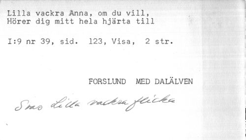 //// - //// Lilla vackra Anna, om du vill, //// Hörer dig mitt hela hjärta till //// ! //// } //// * //// . //// 1:9 nr 39, sid. 123, Visa, 2 str. //// t //// j //// < //// FORSLUND MED DALÄLVEN //// ! //// % //// s //// r //// ! ////