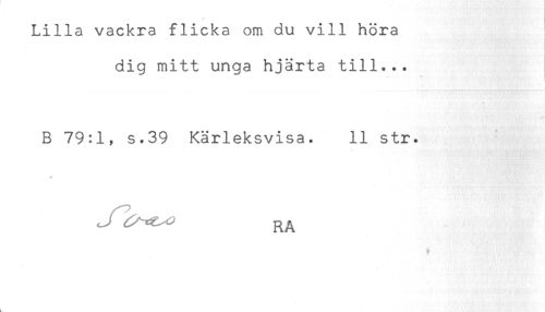 //// dig mitt unga hjärta till... //// B 79:1, s.39 Kärleksvisa. 11 str. //// RA ////