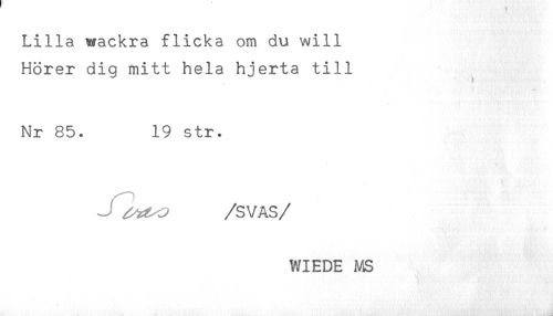 //// Lilla wackra flicka om du will //// Hörer dig mitt hela hjerta till //// Nr 85. 19 str. //// ^^ /SVAS //// /WIEDE MS //// j ////
