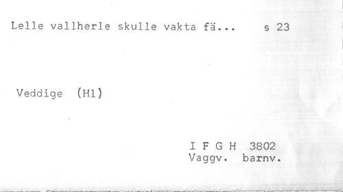 //// Lelle vallherle skulle vakta fä... s 23 //// Veddige (Hl) //// * //// I F G H 3802 //// Vaggv. barnv. ////