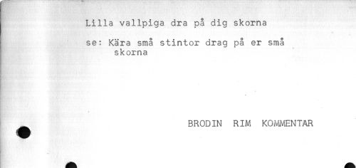 //// Lilla vallpiga dra på dig skorna //// se: Kära små stintor drag på er små //// skorna //// BRODIN RIM KOMMENTAR ////
