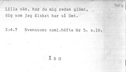 //// Lilla vän, har du mig redan glömt, //// dig som jag älskat har så ömt. I //// - ^ s ** - t //// ) //// t //// - , .. . . I //// - //// 3:4.? Svenssons saml.häfte Nr 5. s.18. //// . //// * //// -'. . . //// ' 4 ^ . - - '. ; ' '* .'i .,- ^ . ' . -'.-^^t' * //// ÅBO //// ' L //// ' . . ! //// i* //// * : //// : ////