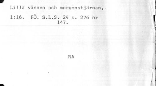 //// Lilla vännen och morgonstjärnan,- //// 1:16. FÖ. S.L.S. 29 s. 276 nr T //// 147. \ //// RA ////