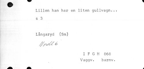 //// Lillen han har en liten gullvagn... //// 3 3 //// Långaryd (Sm) ////