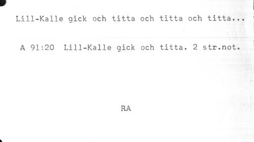 //// ! //// Lill-Kalle gick och titta och titta och titta... ' //// r //// A 91:20 Lill-Kalle gick och titta. 2 str.not. //// RA ////