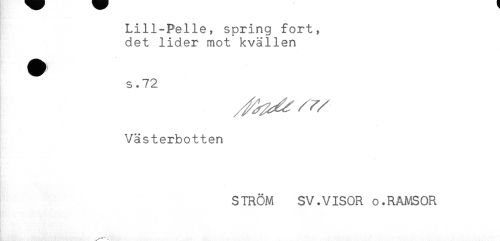 //// Lill-Pelle, spring fort, //// det lider mot kvällen //// ^ s.72 //// Västerbotten //// STRÖM SV.VISOR o.RAMSOR ////